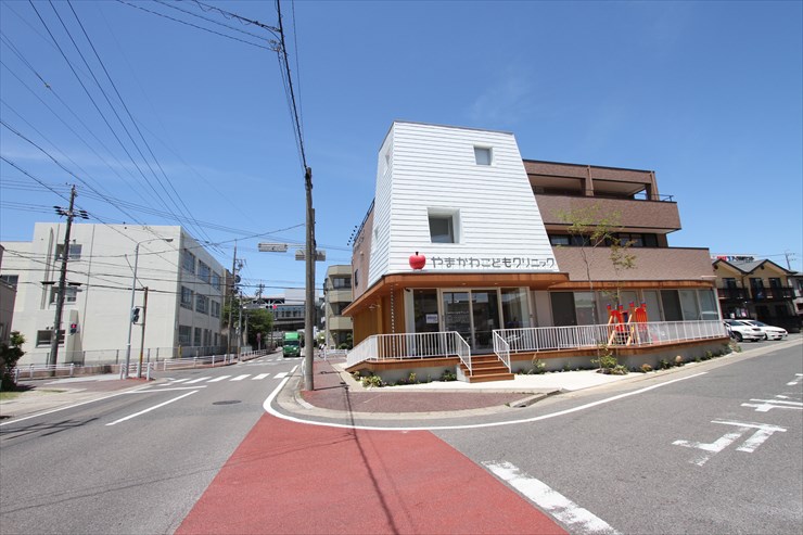 - 山田小学校の南側の交差点角にあります。
