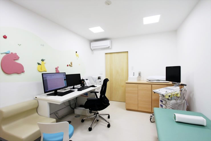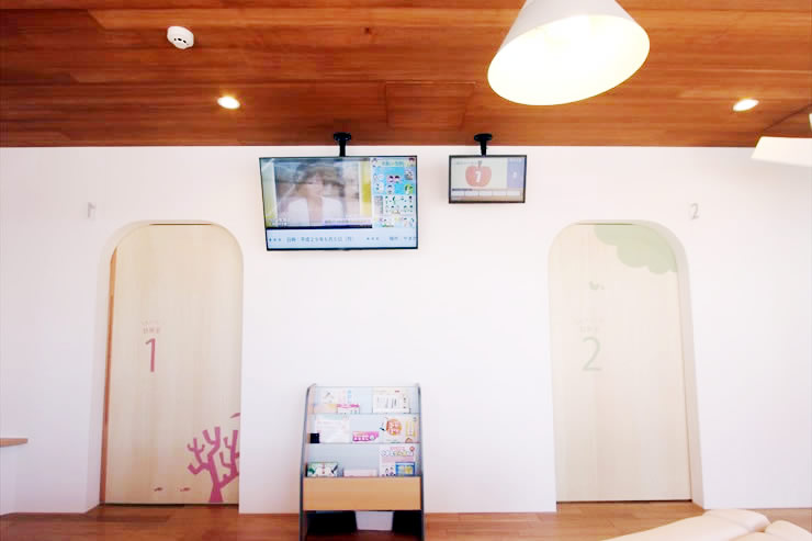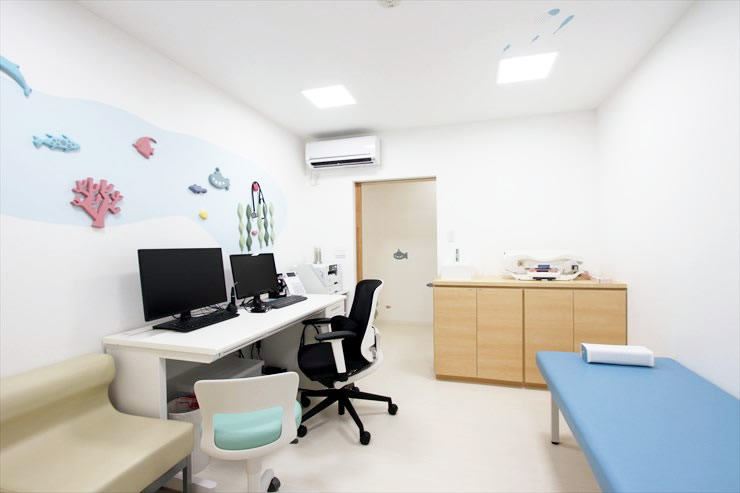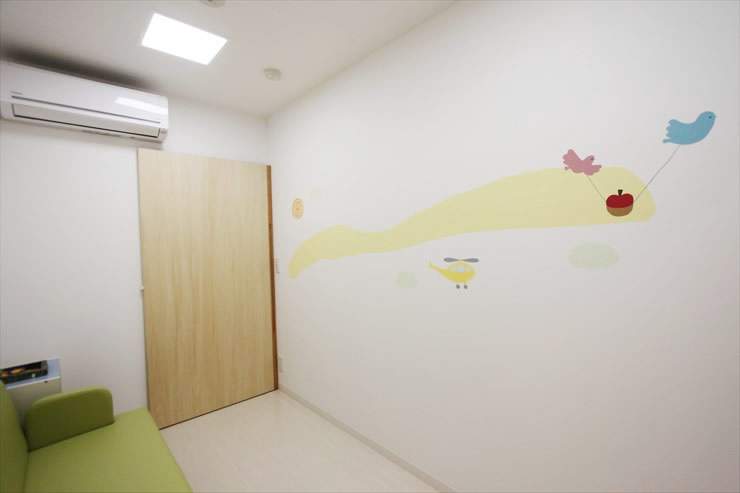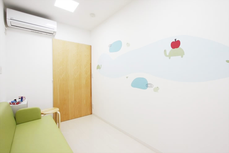 - こちらも、健康なお子さんの待合室や診察室となります。奥の扉は診察室や処置室につながっています。