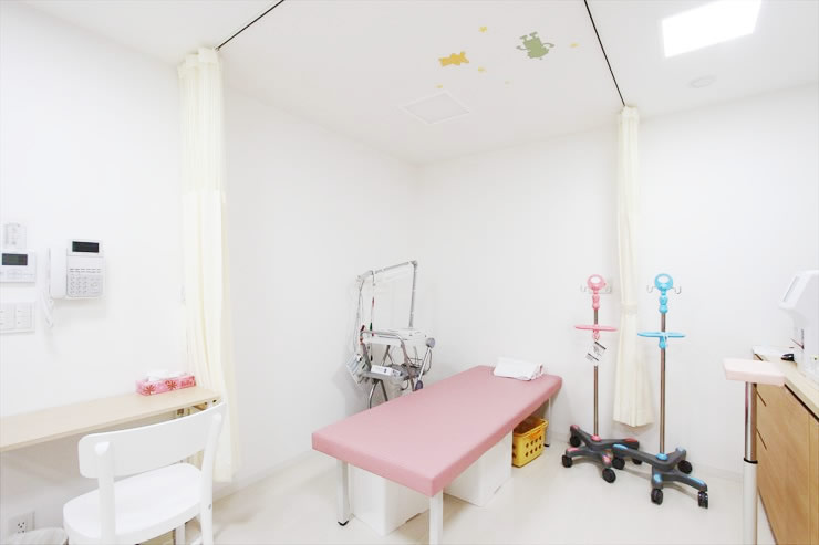 - おたふくや水ぼうそうなどのお子さんは、診察~会計まで一つのお部屋で行います。この部屋では点滴を受けることもできます。